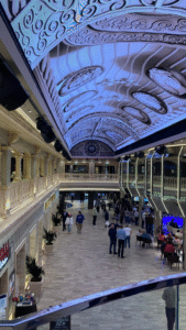 Fredagen 3 oktober Gråmulet och blåsigt. Vi ska spendera hela dygnet till havs ner till Kiel. Trots sidvinden rullar det inte så farligt och vi har det trevligt ombord. Vi är inbjudna till ett VIP event med kaptenen och i väntan på det står vi och beundrar hur taket i den stor arkaden ändrar mönster. …