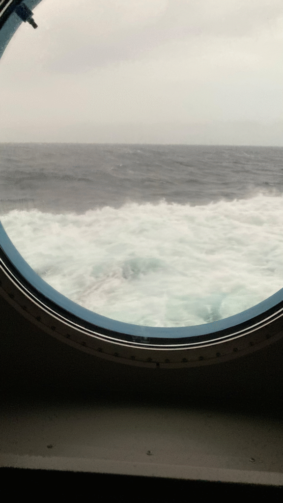 När vi kommer ut på Nordsjön blåser det på ganska bra nere vid Norges sydspets får vi 27 m/s sid vind men det rullar inte så farligt.