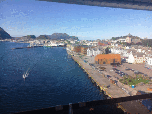 Onsdagen 1 oktober Ankommer Ålesund tidigt på morgonen, soligt och 14 grader. Tar det lugnt och äter en sen frukost i buffe´n . vi avser hoppa lunchen. Utsikten från båtens 15 däck är fantastiskt. Drinken före maten intages idag i Carousel Lounge där vi varit på kvällarna och lyssnat på storbandsmusik vilket det blir i …