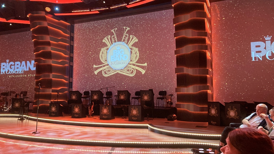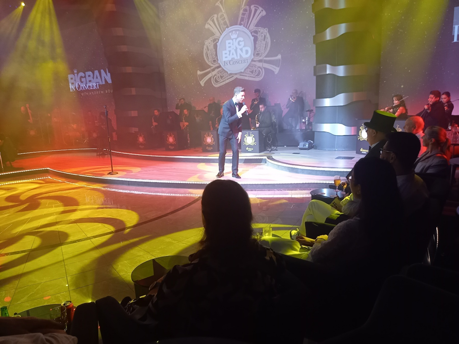 I kväll kör storbandet och de har en jätteduktig manlig sångare. Showen är helt otrolig.